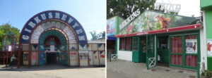 Skælmske viser fra henholdsvis cirkusrevyen og bakkens hvile på dyrehavsbakken